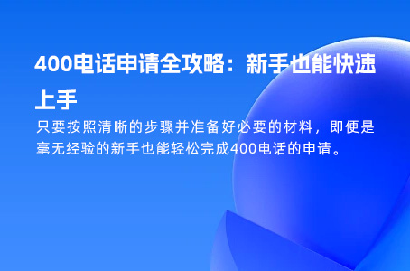 对于初次接触400电话申请的企业或个人而言,整个流程可能看似繁琐且充满挑战。然而,只要按照清晰的步骤并准备好必要的材料,即便是毫无经验的新手也能轻松完成400电话的申请。本文将为您详细介绍400电话申请的简化流程。