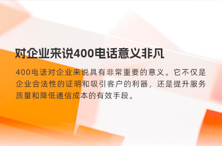 综上所述,400电话对企业来说具有非常重要的意义。它不仅是企业合法性的证明和吸引客户的利器,还是提升服务质量和降低通信成本的有效手段。因此,对于希望提升品牌形象、拓展市场份额的企业来说,拥有一个正规的400电话是非常必要的。