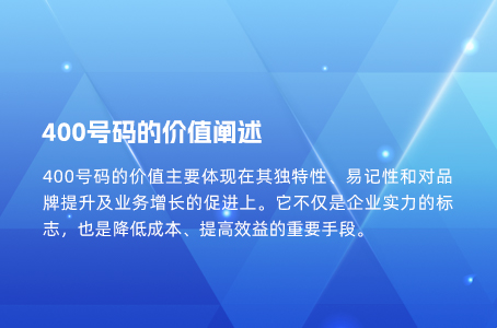综上所述,400号码的价值体现在其独特性、易记性、品牌提升及业务增长等多方面。它不仅是企业实力的象征,更是降低成本、提高效益的有效途径。
