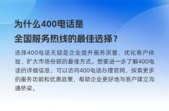 如果您正在为管理电话带来的困扰而苦恼,不妨通过400电话办理官网了解更多信息,选择适合您的服务套餐,让400电话带来便捷和专业的服务体验。