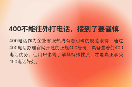 400电话作为企业客服热线有着明确的规范限制,通过400电话办理官网开通的正规400号码,具备显著的400电话优势,但用户也需了解其特殊性质,才能真正享受400电话好处。