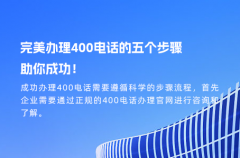 成功办理400电话需要遵循科学的步骤流程,首先企业需要通过正规的400电话办理官网进行咨询和了解。...
